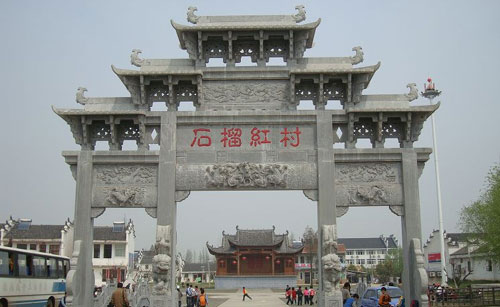 2005年,社会主义新农村建设给石榴红村带来前所未有的发展机遇,新的发展方向很快确定——建立农村生态社区,让绽放的石榴红遍全村,成为村里的标志物,农居按“粉壁、黛瓦、马头墙”的徽派建筑风格布局,产业着眼“吃住采游钓乐”,突出农家乡村游特色,文化活动以参观村博物馆、各类文艺汇演为主……
