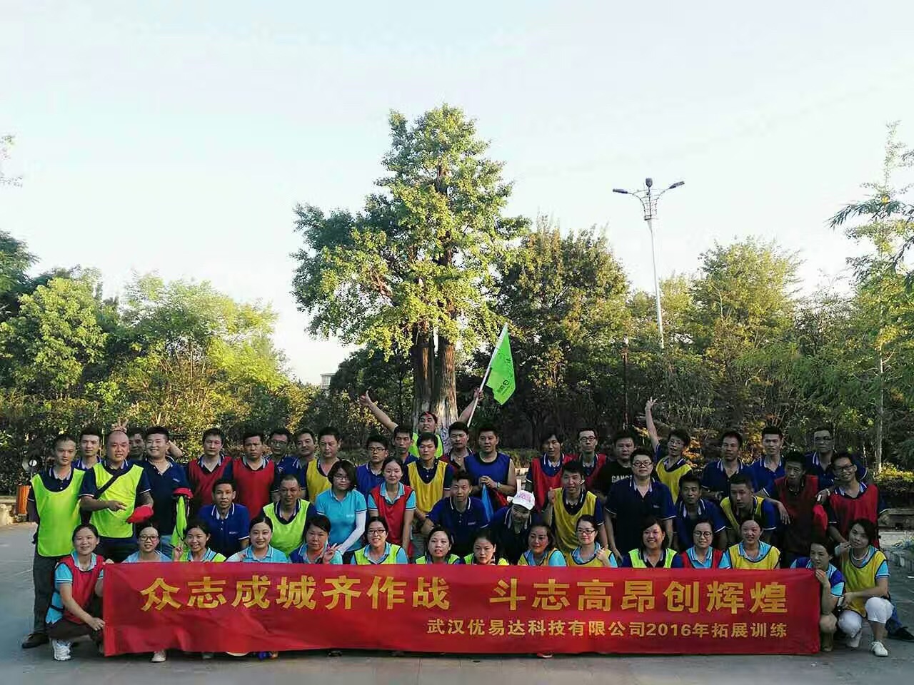 武汉优易达科技,在武汉优拓户外运动有限公司教练员的带领下,来到孝感天紫湖,进行为期一天的户外拓展活动。上午7点整,大家准时公司集合,一路欢歌笑语来到拓展基地,首先进行短暂的企业军事化训练,再进行破冰分组活动,上午是挑战卓越圈项目。中餐之后大家短暂休整,下午2点准时开战场地拓展训练,有团队配合、细节制胜的沙场点兵,有分工明确、执行到位的双解码,最后是团队终极总结项目毕业墙,一天的活动很快结束,大家依依不舍,期待下一次更加精彩的合作...
