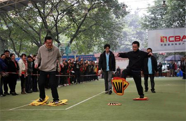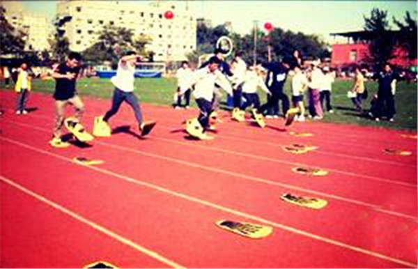 项目名称:脚踏实地 适合人群:10岁以上 项目人数:4人 项目特色: 1、柔软度好,安全系数高。 2、增强参赛队员的集体荣誉感。 3、能够培养参赛人员的团队协作精神,同时起到锻炼身体,娱乐身心的目的。 比赛方法:比赛开始前,参赛队员穿好鞋在起跑线后做好准备,裁判发令后,队员用穿好的鞋去粘取跑道上其他的大脚掌,大鞋任意部位通过终点线所在垂直平面为计时停止,用时少者名次列前。